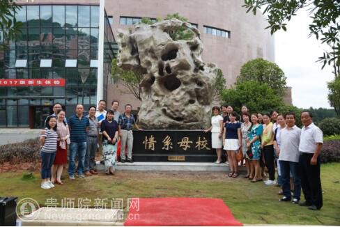 捐建校友代表、贵州三联教育机构董事长肖开玉在揭幕仪式上说:明年就是母校建校四十周年和转制十周年,我们捐建“校庆观赏石纪念体”一是为了表达我们广大校友对母校的一片深情,我们虽然各自工作和拼搏在省内各地,在不同的岗位上干事创业,许多校友还在自己工作的事业领域上做出了一点成绩,我们时刻关注和牵挂着母校的发展,母校的每一个进步和取得的每一个发展变化始终都能让我们感到骄傲和自豪,在我们校友的心里始终都有一颗感谢母校培养的感恩之心。二是我们要以捐建“校庆观赏石纪念体”的形式来为母校建校四十周年和转制十周年献上我们校友的良好祝愿,祝愿母校生日快乐,祝愿母校在未来的发展征程上风调雨顺、花好月圆!