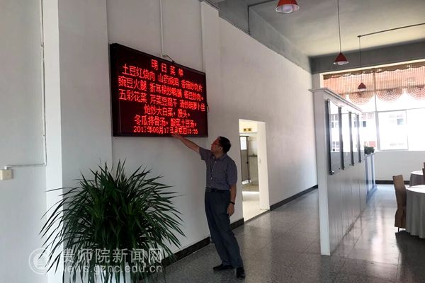 在检查到爱心食府时,他说:“为切实增强教职员工的对学校的认同感和归属感,作为体现这一感知载体的教职工中午工作餐就显得尤为重要。作为教工餐厅,食堂应切实把菜品做好,最大限度满足老师们的午餐需求。”他还对食堂就餐环境装修效果给予了较高肯定。食堂负责人对校领导的肯定表示了感谢!表示将根据教师就餐率情况设置一个固定和一个活动的自助餐台;并将在原开餐窗口设置两到三个特设窗口,满足老师们的不同就餐需要;就餐形式从原来半开放式自助改为全开放式自助用餐、除了布置音乐和电视外,还增加了每日食谱电子显示屏,方便老师了解每日的菜品。就餐用具也从原来的不锈钢餐盘升级为五格白瓷餐盘,菜品保持在8至10样,汤菜两样(一荤一素),主食两样,着力提高菜品质量。令狐校长了解后表示满意,并希望坚持食品安全意识,继续做好师生就餐服务工作,为保障学校正常教学秩序作出贡献。