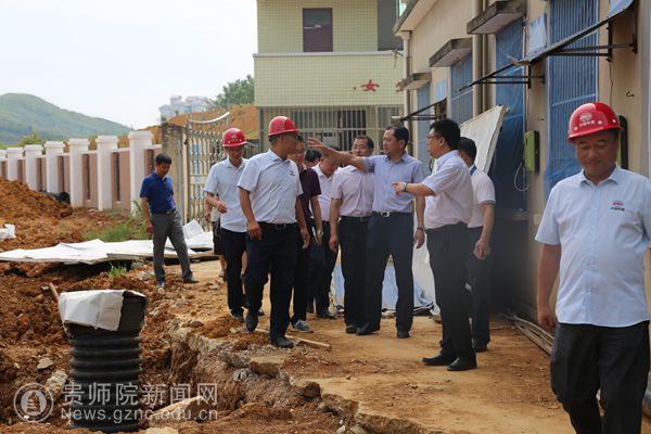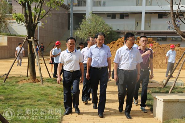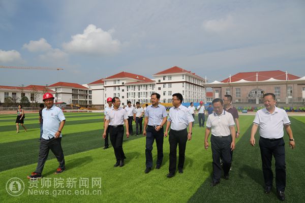 石培新、贵安新区管委会副主任邓波在附属实验中学党委书记蔡宗平、校长刘隆华,贵安新区置业投资有限公司副总经理卢其斌等负责人陪同下,实地查看了食堂、宿舍、教室、球场、实验楼等学生学习、生活保障设施;走进教学楼、演播大厅、艺术活动中心、会议接待室等,了解学校教育教学准备工作与校园文化建设。