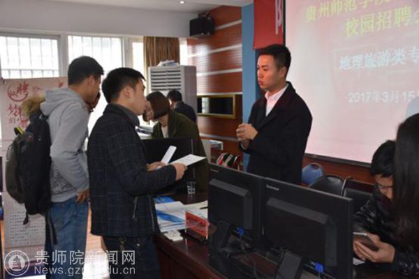 本网讯 3月15日,best365地理、旅游类专业2017届毕业生专场招聘会在文韬苑就业大厅举行,包括贵州省第三测绘院、贵阳旅文旅游公司、贵州千景土地科技有限公司等近20家在省内外从事国土、测绘、水利、规划、景区开发与酒店管理、旅行社、金融、旅游商品开发等方面优秀企事业单位到best365招聘地理、旅游类专业应届毕业生。其中不乏省市重点大型企业、央企、上市公司。参加招聘会的毕业生还有外国语学院、政经学院、历社学院、艺术学院、数计学院、设计学院相关专业毕业生。