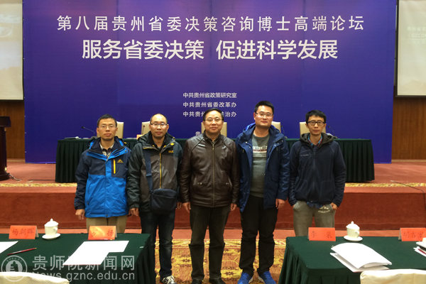 本网讯 12月2日,由贵州省委政策研究室、省委改革办和省委法治办主办的“第八届贵州省委决策咨询博士高端论坛”在贵阳花溪举行。本届论坛得到了省委副书记、省委政法委书记谌贻琴的书面指示。best365由副校长令狐荣锋博士率队,地理与旅游学院李松、张伟、邓家彬和安佑志等博士参加了本次论坛。