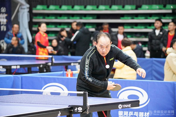 在挥拍击打、欢呼呐喊间,选手奋勇拼搏,展现惊人球技,乒乓球在方寸之间来回跳动,漂亮的抛球、凌厉的扣球、精妙的旋球,充分展示着国球魅力,引得观众阵阵喝彩。在一场场酣畅淋漓的“拼杀”中,教职工组经过36个7场制团体赛的角逐,最终凯里学院获得冠军,遵义师范学院获得亚军,贵州师范大学和铜仁职业技术学院分获三四名。学生组单打、双打、混合双打项目将于12月29日上午决出名次。