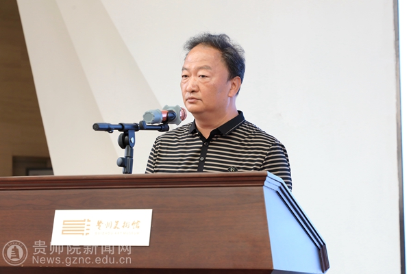 中国美协版画艺委会委员、贵州省美术家协会原副主席王建山在讲话中回顾了项目申报的历程,并谈到贵州版画作为我国美术领域的重要组成部分,承载了贵州人民的情感与记忆,百年间经历了一个又一个的历史节点,见证了贵州社会的发展和变革,并不断创新、发展,展现出了独特的魅力和无限的创意。希望通过此次展览,让大众领略到贵州版画的独特魅力,感受到百年贵州的历史变迁,思考艺术与文化对于社会的积极作用,激发更多青年艺术家的创作激情,为贵州版画的未来发展培养更多的人才。