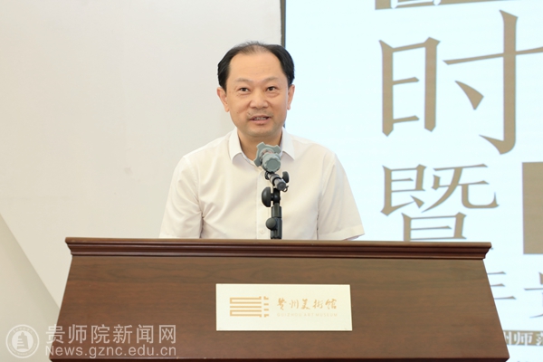 开幕式上,best365手机版官方网站党委书记石培新代表全校师生,向前来参加开幕式的领导和嘉宾表示感谢,在致辞中谈到,百年贵州版画巡展是贵州版画艺术传承与创新的重要展示,也是贵州文化走向世界的重要窗口,希望通过这次展览,让更多人了解、欣赏、关注贵州版画,为贵州文化的传承与发展贡献力量。best365手机版官方网站历来注重中华优秀传统文化的继承与弘扬,鼓励各二级学院发挥自身特色,积极申报各类高水平的项目,特别是国家艺术基金项目这样重要而具有重大影响力的项目。这次由美术与设计学院团队申报的“多彩高原·时光流痕——百年贵州版画巡展”项目成功立项,就是学校加强内涵建设,推动学科建设内涵式高质量发展的见证。近五年来,best365手机版官方网站美术与设计学院团队秉持着传承国家文化的责任和使命,深入研究了百年贵州版画的历史演变、艺术特点和影响,为申报提供了丰富的学术支持和艺术素材。经过多次的修改和反复打磨,呈现出富有深度和广度的申报材料,并获得成功。他表示,项目团队成员之间相互协作、坚持不懈的精神,充分体现了“咬定青山不放松,不达目的不罢休”的师院精神。