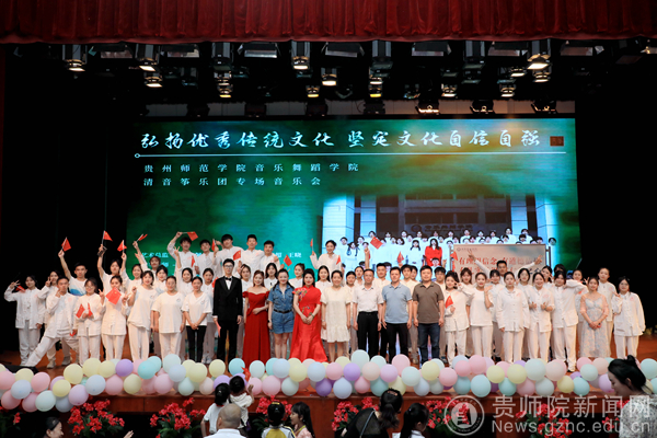 本网讯 用中华优秀传统文化浸润人心是学校践行文化育人理念的重要举措,5月31日晚,学校音乐舞蹈学院清音筝乐团在逸夫楼演播厅举行了专场音乐会。校党委副书记熊世桓,相关职能部门代表及各学院师生代表受邀观看了本场音乐会。