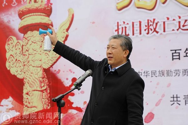 活动伊始,副校长余维祥致辞,他代表学校向参加此次活动的老师们、同学们表示真挚的问候。他强调,回望历史,青年学生是国家建设的中流砥柱,是民族复兴的中坚力量,作为新时代的青年,要学习先辈们意气风发、踌躇满志,展现当代青年的青春活力。并提出了四点希望:一是牢记使命,坚定信念;二是忠诚爱国,勇于担当;三是锻炼意志,磨砺品格;四是潜心学习,增长才干。他勉励同学们要抵得住磨砺,也要立得起大志,乘势而上,奋发进取,勇于创新,以更加强大的姿态迎接新的挑战,为国家的繁荣发展提供不竭的力量源泉。