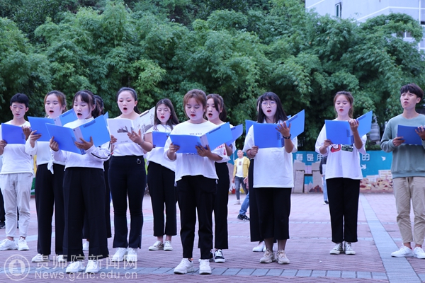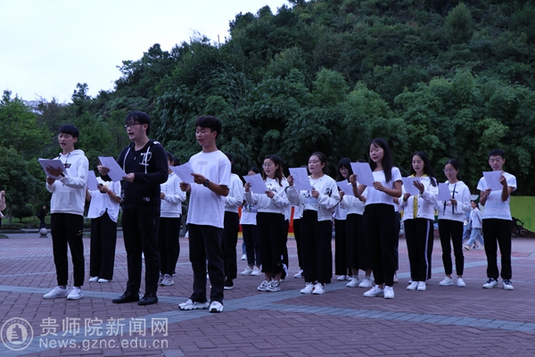 随后,普通话协会带来朗诵节目:《祖国啊,我为你骄傲》,接着文学与传媒学院学生带来声情并茂的朗诵《师恩如山》。