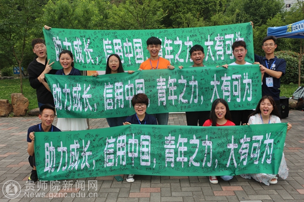 本网讯 在第十一个“全国信用关爱日”来临之际,best365商学院积极响应全国大学生信用大使联盟号召,在贵州点亮了第一把“信青年”计划火炬,于6月20日发起以“助力成长,信用中国”为主题的“信用关爱日”千人签名活动,best365手机版官方网站广大师生不畏酷暑,积极参与到了此次活动中来。