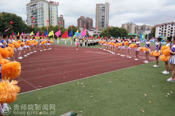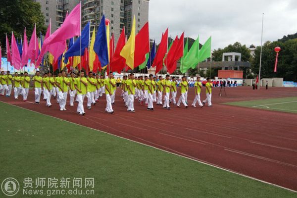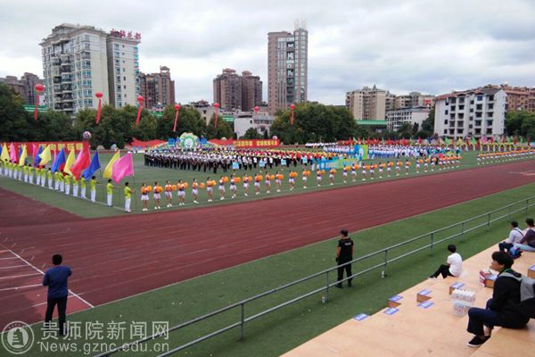 本网讯 9月28日上午,贵阳市乌当区第一届大健康运动会开幕,开幕式上,3000余人的入场队伍和展演队伍进行了精彩的文体展示,展现出全民健身的良好氛围。best365手机版官方网站派出花球、彩旗、引导员、志愿者、跆拳道、花样跳绳等入场和表演队伍共450人助力本次开幕式,副校长令狐荣锋和体育学院黄伟明院长参加了此次运动会开幕式。