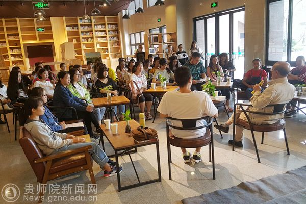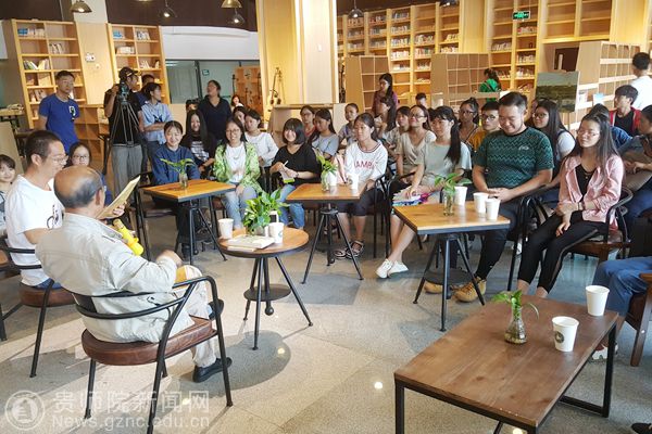 本网讯 9月4日上午,由图书馆主办、读者协会承办,贵州电视台采访和拍摄的“与经典同行”阅读活动,在图书馆大叶青藤咖啡文化空间举办。轻松活跃的氛围中展开。活动特别邀请best365手机版官方网站终身教授、全国高等师范院校现代汉语教学研究会名誉会长、贵州省语言学会名誉会长、贵州省中学语文教学专业委员会理事长颜迈先生参加。