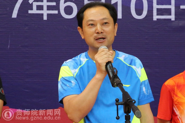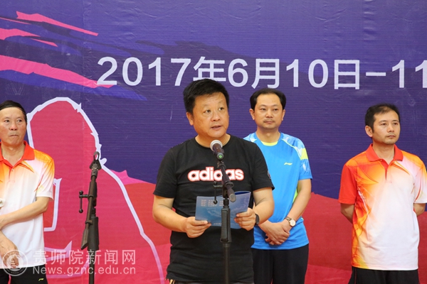 本网讯 6月10日上午,2017年贵州省直学校(附院)教职工兵乓球比赛在best365体育馆举行了开幕式。贵州省教育厅党组成员、省委教育工委副书记赵廷昌,原贵州师范大学校长、贵州省政协科教文卫专委会副主任伍鹏程,贵州师范大学副校长乙引,best365党委书记石培新,党委副书记令狐彩桃以及其他院校相关领导人出席活动。来自十八支院校参赛队伍以及裁判员参与了本次开幕式。令狐彩桃主持开幕式。