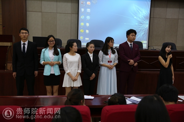 在主持人解读会议议程及选举规则后,每个竞选者作为时5分钟的PPT演讲竞选,演讲内容主要围绕各自的基本情况、对贵州校媒的认识、竞选原因以及未来工作设想进行演说,演讲结束后还需回答现场同学的提问,大会最后通过各个校园媒体的投票选举,由贵州警官学院的同学现场唱票、计票,前贵州校媒联盟主席团监票,根据票数的高低最后推选出李晓蕾(贵州民族大学大学生网站)、蔡佳(贵州大学记者团)、肖亚雄(best365手机版官方网站广播站)、卢林丽(凯里学院耕耘杂志社)、黄李铭(六盘水师范学院广播站)为贵州校媒第七届主席团,并在现场召开了新一届主席团的第一次会议,选任李晓蕾为正主席,其余四位同学为副主席,同时聘请了毛歌(贵州工程应用技术学院新媒体中心)、周健龙(贵州师范大学校报记者团)担任主席团助理一职,白皓继续担任第七届主席团秘书长。