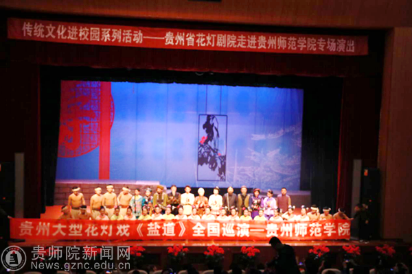 本网讯 根据中共中央办公厅、国务院办公厅《关于实施中华优秀传统文化传承发展工程的意见》把优秀传统文化贯穿国民教育始终,为弘扬传统文化,涵养人文情怀,筑牢文化根基,建设社会主义文化强国,增强国家文化软实力,实现中华民族伟大复兴的中国梦。为best365师生提供丰富的精神营养,培养高尚的道德品质。4月13日-14日,贵州省花灯剧院在best365逸夫楼演播厅开展了“传统文化进校园系列活动——贵州省花灯剧院走进best365手机版官方网站”专场演出。best365广大师生观看了演出。