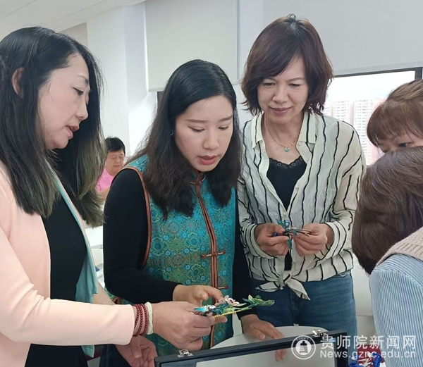 同时,此次研习注重理论与实践体验的融合,巧妙地将传统文化与特色课程相结合,提供了极富中华传统文化魅力以及贵州地方民族风情的艺术才艺实践活动。其中,水墨画和太极拳这两项极具中国传统文化代表性的项目,让海外华文教师们感受到了中国传统文化的美学奥秘。而扎染和缠花课程的非遗文化展示与体验环节被引入到教学活动中,更是此次活动的一大亮点。学员们不再是简单的旁观者,而是真真切切的文化参与体验者。他们在扎染的过程中,体验着布料在自己手中一点点被染上独特的色彩与图案,感受着古老技艺的神奇魅力,怀着期待心情投入的每一个环节只为了那一块小方巾;在缠花制作中,学员们领略了传统手工艺的精巧细致。实践教学活动往往让学员得以放松,因此也受到了海外华文教师一致的好评。他们纷纷表示,这样的活动让他们能够深入了解中国传统手工艺的技巧和内涵,并且希望将这些宝贵的体验以及学到的才艺融入到今后的国际中文教学中。