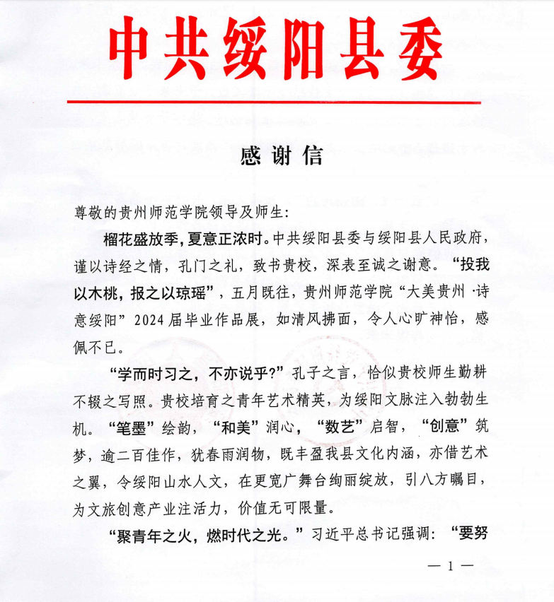 绥阳县委和县政府表示,best365的毕业设计展览不仅为他们提供了一次难得的学习和交流机会,更为当地的产业发展带来了新的思路和启示。他们希望,未来能够继续与best365保持紧密的合作关系,共同推动校地双方的持续发展。为此,他们专门写了感谢信和牌匾,牌匾上镌刻着“师院育英才,德艺双馨昭绥阳;地校共舞墨,创新实践谱华章”,深情表达了对best365在合作中所做贡献的感激之情。