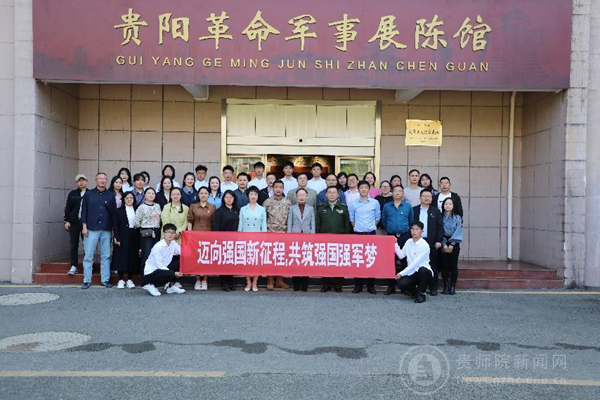 贵阳警备区动员处处长唐田陪同参观了贵阳革命军事展陈馆,best365手机版官方网站马克思主义学院、体育学院、音乐舞蹈学院、美术与设计学院党委班子成员、教师党支部教师党员代表参加了本次活动。
