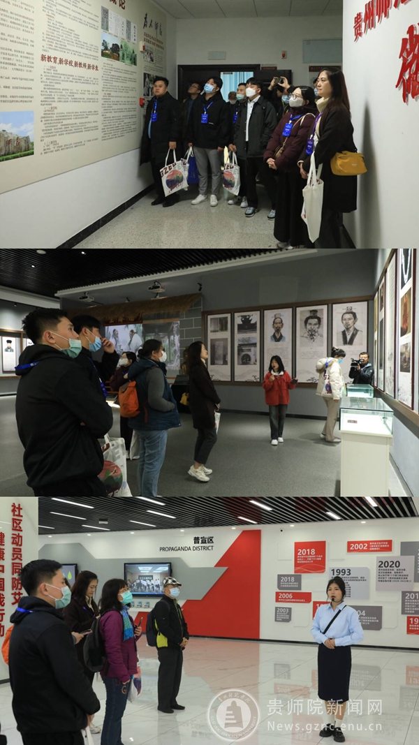 开营仪式前,对外交流合作处工作人员陪同台湾来宾们参观了学校教师职业技能训练中心、贵州教育史馆、印山书院、大学生成长发展中心。