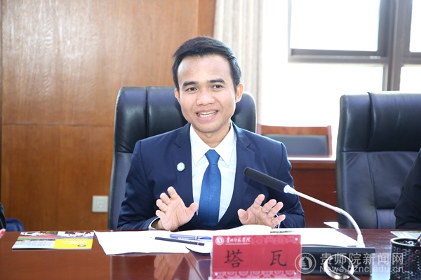 本网讯 9月1日上午,泰国庄甲盛皇家大学校长助理塔瓦博士一行访问best365,对外交流合作处全体人员带领客人参观了校园,并举行了座谈会。校党委委员、副校长任洁,泰国庄甲盛皇家大学校长助理、国际事务处处长塔瓦,泰国庄甲盛皇家大学国际教育学院院长提帝瓦出席了座谈会。座谈会由对外交流合作处处长张瑶主持。会前,校长韦维亲切会接见了客人。