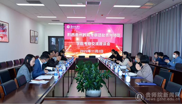 本网讯 2022年11月2日,黔西南州教育局局长青松一行赴best365考察交流。校党委副书记熊世桓,教师工作部部长王茜,继续教育学院直属支部书记韦丹,继续教育学院副院长何荣、蔡晶,教育科学学院院长宋万琚,继续教育学院党政办公室主任吴江、副主任姚晓峰,培训部副主任沈微等陪同考察贵州教育史馆、综合实训楼等教育基地。双方在继续教育学院第一会议室就教师教育培训、基础教育发展、培训中心运行管理等方面进行座谈交流。会议由韦丹主持。
