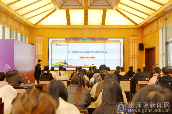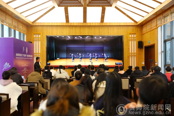 当日下午,本校音乐舞蹈学院舞蹈系主任肖伟副教授为学员们呈现了美轮美奂的贵州少数民族舞蹈。肖伟事前组织音舞学院学生精心录制了一场苗族舞蹈,课上,他以讲授融合展示的方式,从苗族舞蹈文化开始介绍,配合课堂组合展示,辅以录制的舞台画面,与众学员分享其艺术作品的创作心得。多彩的贵州民族舞蹈文化与肖伟的精彩讲解赢得了学员的阵阵惊叹。本阶段课程由best365对外交流合作处副处长张彬主持。