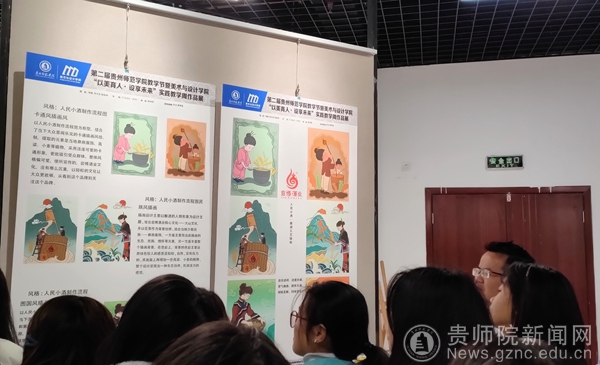 唐艳一行仔细观看实践教学周成果展,对此次展览成果给予较高评价。他们最近拜访多所高校,观看不少设计作品展览,对于我院师生一周多的时间能做出相对成熟的完整作品设计方案,尤其是部分插画设计作品与产品建模渲染作品,比较精彩,说明我院师生团队的设计创作能力还是非常高。他们从商业运营的角度,提出了宝贵的意见和建议。