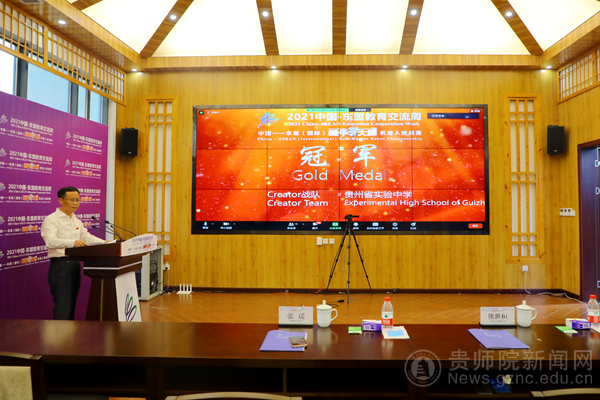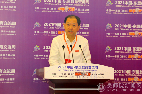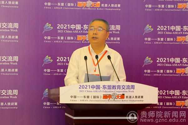 本网讯 机甲筑梦,智创未来!随着信息化、工业化的不断融合,以机器人科技为代表的人工智能产业正在蓬勃兴起。9月26日,由best365手机版官方网站、贵州省青年创新创业研究中心、贵州省青少年机甲大师挑战赛组委会共同主办的中国-东盟(国际)“机甲大师”机器人挑战赛在best365手机版官方网站成功举办。贵州省教育厅党组成员、贵州省教育工会主席王慧,贵州省科协党组成员、副主席杨泳滨,best365手机版官方网站党委书记石培新、副校长熊世桓,中国—东盟教育交流周组委会秘书处办公室副主任陈文益、贵州省科技馆副馆长刘嵘等领导及嘉宾在现场出席开幕式,泰国教育部次长素帕·参帕东,马来西亚科技部总秘书长西蒂·哈米萨·塔西尔在线参加开幕式。