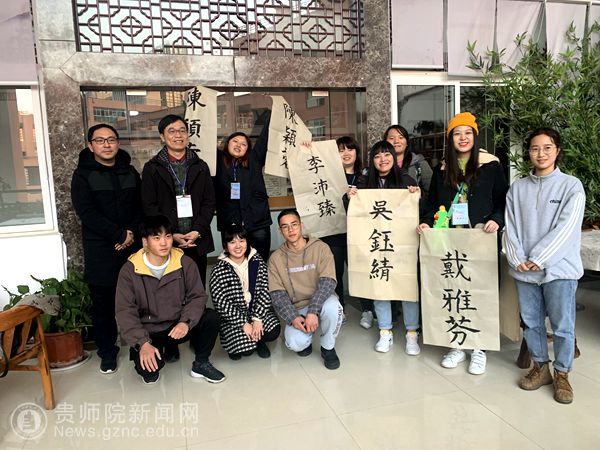 会议结束,大家一起前往文学与传媒学院思知轩进行学生书法活动,台湾来访同学积极参与书法学习,两校学生以书会友很快打破了陌生感,携手传承弘扬中华文化优秀传统,以独到的艺术描绘两岸同胞情缘。