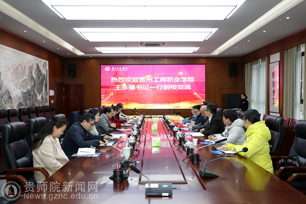 本网讯 11月26日下午,贵州工商职业学院党委书记王永福、校长周刚一行到best365考察交流,best365党委书记石培新、副校长郭文、纪委书记 邬卫东等校领导热情迎接了王永福一行,在信息楼二楼会议室举行了两校交流座谈会,会议由郭文主持。
