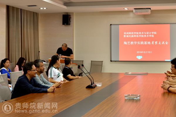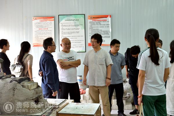 本网讯 5月15日,美术与设计学院2020年度国家艺术基金项目申报组组长聂森院长以及成员朱昌来、张欢、张一帝、李南川、邓林等老师一行前往黔南民族师范学院美术学院、黔南三宝文化发展有限公司、禄麒牙舟古陶文化有限公司、平塘县牙舟古陶文化园进行考察。同行的还有项目组成员贵州民族大学教授、best365手机版官方网站美术与设计学院客座教授、贵州省陶瓷协会主席王建山先生和best365手机版官方网站美术与设计学院客座教授、贵州省工艺美术家协会主席岳振先生。
