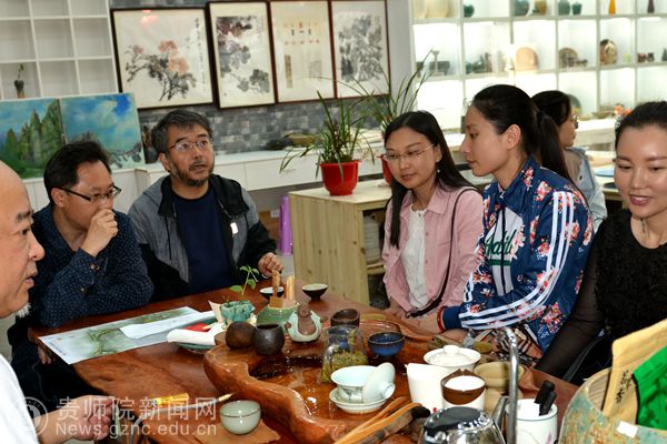 此行的第二站是黔南三宝文化发展有限公司,该公司是集牙舟陶设计、制作、销售于一体的文化公司,由贵州省陶瓷艺术大师张保果所创,也是best365手机版官方网站美术与设计学院的陶艺教学实践基地,张保果本人也是本次艺术基金项目申报组的成员之一。聂森感谢张保果先生为申报所做出的贡献,同时还就申报文本的具体写作进行了探讨。