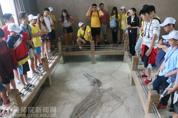 6月19日,营员们乘车前往兴义参观关岭国家地质公园——贵州鱼龙博物馆。博物馆珍藏着原位贵州龙化石,以及两亿年前的海百合。纹路清晰而又栩栩如生的海底生物化石让营员们感觉仿佛置身与亿万年前的恐龙时代,给他们带来了极大的震撼,。