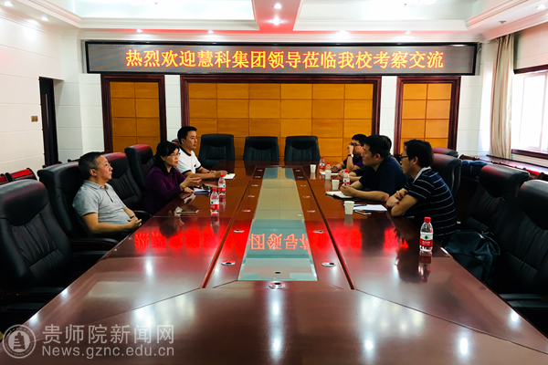 本网讯 5月16日,慧科集团首席执行官岳喜伟、副总裁曾慜、贵州分公司总经理王丹枫、贵州项目总监江山等一行四人到best365考察交流,交流座谈会在数计学院会议室举行,best365手机版官方网站副校长郭文教授、数计学院院长左羽教授、副院长熊伟程接待了慧科集团首席执行官岳喜伟一行并与客人进行交流座谈。