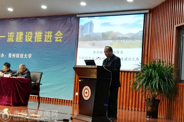 本网讯 12月19日上午,由贵州省教育厅主办、贵州财经大学承办的贵州省双一流建设推进会在贵州财经大学图书馆报告厅举行。副省长陈鸣明、省教育厅厅长王凤友及省各相关职能部门负责人参加了会议。会议由省人民政府学位办秘书长代其平主持。