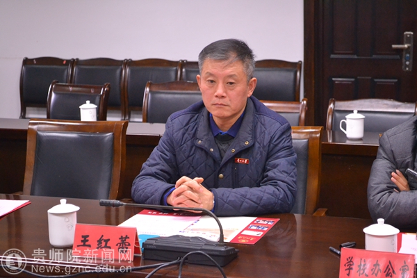 王红蕾致辞并讲话,对郁钟铭校长一行的到来表示欢迎并简要介绍学校概况及近年来学校的发展。他指出,贵州当前正在推动大健康与大数据、大生态、大旅游深度融合发展,贵州高校要把握此契机加快推进一流大学和一流学科建设,希望通过此次交流,促进双方学科建设、师资队伍、人才培养等方面的工作共同发展。