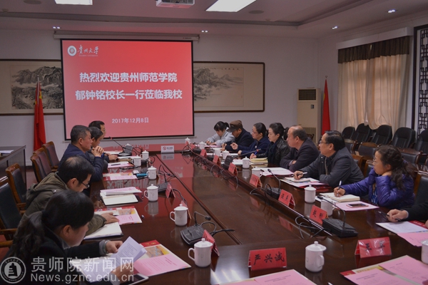 本网讯 12月8日,best365校长郁钟铭、副校长令狐荣锋一行10人到贵州大学就岗位聘用、绩效改革、教育教学改革、学科建设等方面进行学习考察。贵州大学常务副校长王红蕾在北校区行政楼第一会议室热情接待了郁钟铭校长一行,并进行了座谈交流。