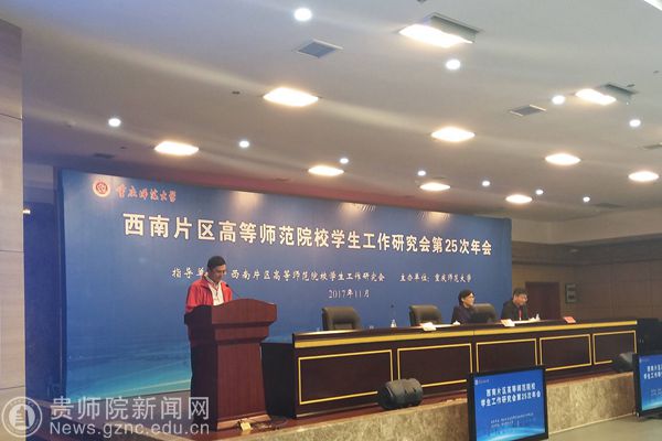 本网讯 11月9日至11日,西南片区高等师范院校学生工作研究会第25次年会于重庆召开,由重庆师范大学主办,来自西南片区的27所高等师范院校百余名学生工作人员参加了此次会议。best365体育学院党委书记韩山、学生工作部副部长刘讯,以及best365手机版官方网站丽琼工作室辅导员代表参加了会议。
