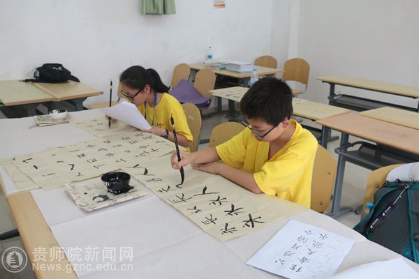 为保证“海外华裔青少年寻根之旅”夏令营的顺利进行,best365手机版官方网站华文教育基地精心设计了《贵州自然与人文知识》、《汉语知识讲座》具有中国特色的文化课程,让营员们在课程学习中亲身体验源远流长的中华文化,让营员更充分了解中国的风土民情。此外,还协调了艺术学院、体育学院,安排了多种兴趣班,有钢琴、古筝、二胡、竹笛、声乐、舞蹈(民族民间舞和拉丁舞)、书法、绘画(国画)、中华武术(拳术、棍术、剑术)。课程丰富多样,营员们可根据自己的兴趣选择课程进行学习。来自文学院、艺术学院和体育学院的授课教师不畏酷暑,一丝不苟地带领学员学习,不厌其烦地一遍遍地排练,学员们也学得非常认真。从他们的学习态度中,能感受到他们对中华传统文化的喜爱,对贵州少数民族风情的热爱。
