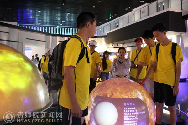 7月28日,营员们参观了平塘大射电。大射电位于贵州省黔南布依族苗族自治州平塘县大窝凼的喀斯特洼坑中。500米口径球面射电望远镜被誉为“中国天眼”,历时22年建成,于2016年9月25日落成启用。营员们感受到了大自然的鬼斧神工和现代科学技术结合的发展。