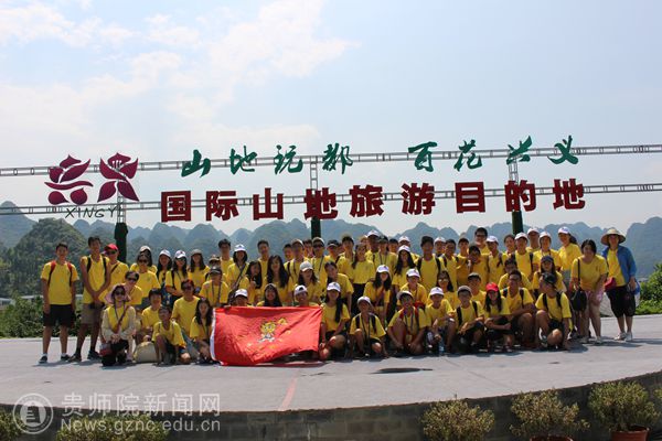 本网讯 7月24-8月4日,2017年第三批“海外华裔青少年寻根之旅”夏令营贵州营营员们分别考察了兴义国家地质公园贵州龙博物馆、青岩古镇、万峰林、黄果树瀑布景区、西江千户苗寨、马岭河大峡谷、大射电、云谷田园等名胜古迹,在考察中不断学习中国传统文化,体味贵州的少数民族风情。