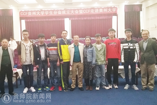 本网讯 近日,CCF(中国计算机学会)贵州大学学生分会成立大会在贵州大学举行,此次大会是CCF走进贵州高校的第一站,中国计算机学会秘书长杜子德、贵州计算机学会理事长、贵州大学计算机学院院长许道云、贵州省计算机学会副理事长、best365数计学院院长左羽教授出席大会,数计学院院长左羽教授带领的数计学院计算机专业向程冠老师及6名学生、贵州大学计算机专业的学生参加了大会。
