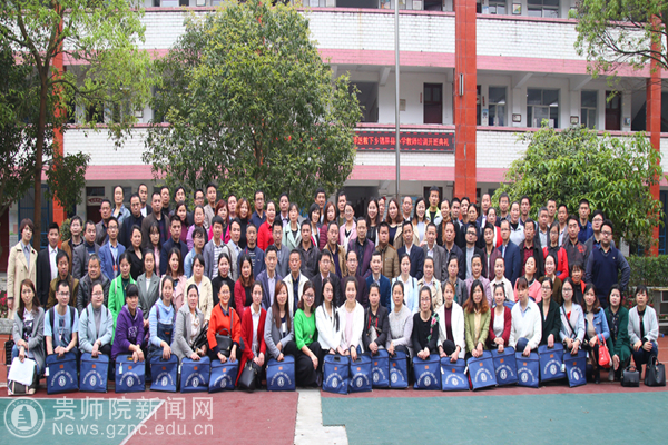 本网讯 4月7日至9日,校“国培办”组织省内外一线教学名师和高校专家共计21余人奔赴黔东南州锦屏县开展“国培计划(2016)”-名师送教下乡项目第一阶段的培训工作。7日上午best365手机版官方网站继续教育学院副院长王先华、锦屏县教育局局长龙景植、副局长潘兴华,中小学语文、数学、英语学科专家团队分别出席在锦屏县民族中学、县城关二小举行的开班典礼。