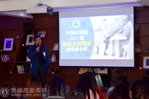 本网讯 3月29日下午,外国语学院特邀贵阳市CC英语校长、best365知名校友杨建嬉校长莅临best365手机版官方网站大学生就业服务中心为外国语学院2017届毕业生作就业讲座及招聘会。best365手机版官方网站副校长何林、外国语学院院长余学军、校招生就业处处长宋婷禹、外国语学院党委副书记刘红玲、副院长杨秀岚、副院长罗泳出席了此次讲座,讲座由刘红玲主持,外国语学院200余名毕业生参加了此次讲座。