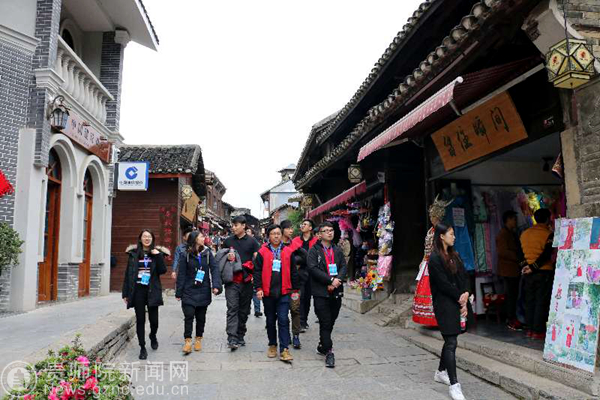 本网讯 3月14日,“2017年国务院侨办所属院校香港校友研习班”学院午后踏青岩古镇,夜晚赏多彩贵州之风活动于中午正式开启。best365国际交流合作处处长张瑶,学校选拔出的3名学生导游和1名学生助理和省侨办共同圆满完成对国侨办领导和学员的陪同参观任务。