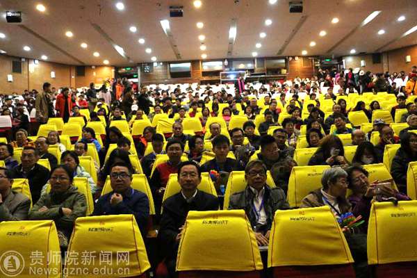 暮色降临,国侨办领导和学员再次乘车前往贵阳大剧院观看大型名族歌舞晚会——多彩贵州风。各位校友们拿着票有序入座,满怀激动与期待共观贵州之风采。少数民族婀娜的舞姿吸引着各位校友的眼球,掌声阵阵;接着,观看了巫术,苗家小伙上刀山,侗族大歌,苗族的芦笙舞、踩鼓舞木叶传情,苗族服饰展示等。最为吸引人的莫过于苗家小伙上刀山,他脚踩锋利刀刃,一步一步向最高点走去,在场的各位校友们看着这一幕幕,心提到了嗓子眼上,当他拿起大刀平放在台阶的最高点,用头与刀刃直接想接,做起了倒立,全场人员不由自主的发出惊叹声,为他的表演感到震惊和震撼。水族的《斗牛舞》、布依族的《跳花会》各少数民族尽展其地方特色风采,诠释着多彩贵州之风。