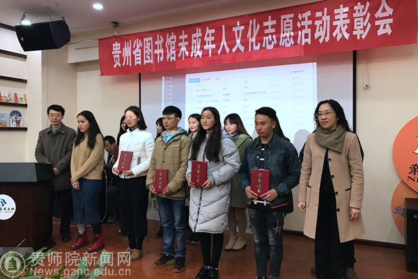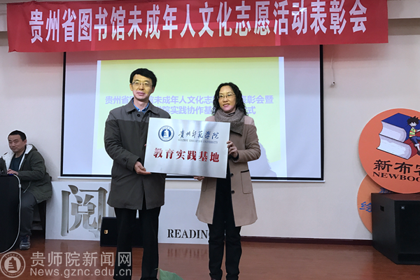 本网讯 3月4日下午,在贵州省图书馆一楼多功能厅举行了贵州省图书馆—best365手机版官方网站实践协作基地挂牌仪式暨“优秀志愿者”颁奖仪式。best365手机版官方网站教育科学学院刘红院长、贵州省图书馆党委副书记韩洪、贵州省图书馆少儿部主任周媛等、best365手机版官方网站教育科学学院罗婷老师及十六名同学参与了此次活动。