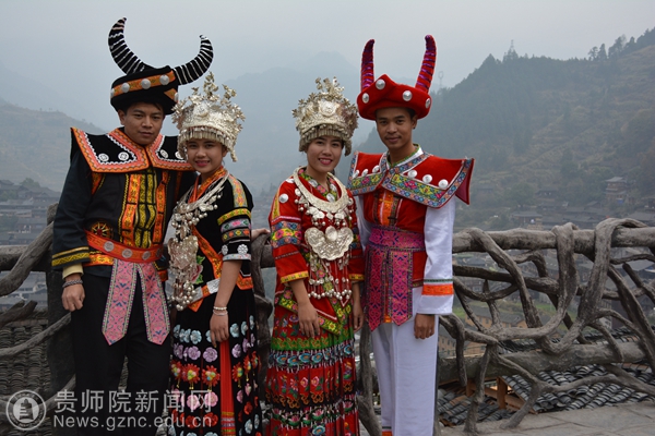 身着苗族服饰的交换生们