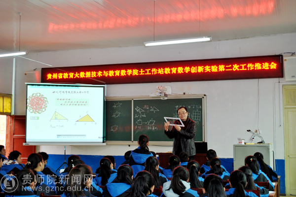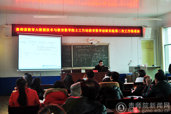 本网讯 由贵州省凯里市第五中学承办的“贵州省教育大数据技术与教育数学院士工作站”教育数学创新实验第二次工作推进会于2016年12月17日在贵州省凯里市召开。贵州省教育科学研究院领导、best365教育大数据与教育数学院士工作站管理办公室负责人、数学与计算机科学学院副院长肖宏治、党委副书记李艳琴、院士工作站项目组成员、四川省邛崃市教研培训中心校长赖虎强、来自全省各地的教育数学实验学校领导及负责人参加了此次会议。