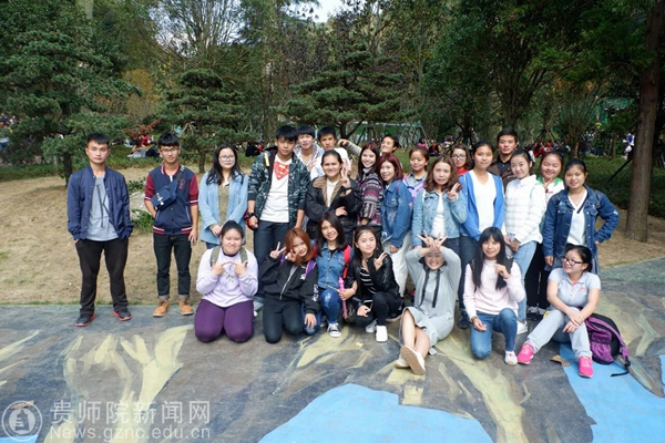 本网讯 11月27日,为了丰富泰国学生在best365的课余生活,在学校的统筹部署下,best365文学院经过多番的讨论,在确保学生安全的前提下,精心安排,认真组织了17位汉语国际教育专业学生带领9位泰国学生前往黔灵山参观旅游。