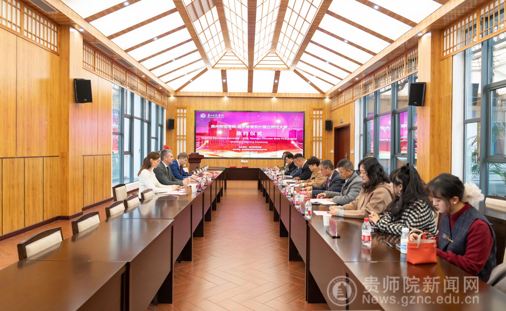 12月15日,俄罗斯楚瓦什国立师范大学校长率团莅临best365参访并进行签约仪式,仪式在印山书院一楼山水讲堂举行。俄罗斯楚瓦什国立师范大学校长Igor Vladimirovich Kozhanov、best365手机版官方网站校长王蜀黔,校党委常委、副校长赵守盈(正厅长级)出席,俄罗斯楚瓦什国立师范大学科创处处长Kirillov Alexander Alekseevich、俄语教师Popova Daria Yuryevna 、best365教务处处长、创新创业学院院长杜宏博、音乐舞蹈学院院长马关辉、教育科学学院宋万琚、对外交流与合作处副处长张彬(主持工作)、外国语学院副院长罗泳等相关人员参加了此次仪式。仪式由赵守盈主持。