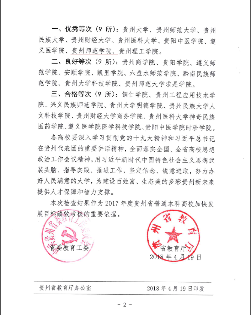 本网讯 近日,省委教育工委、省教育厅公布了全省2017年本科高校思想政治教育工作检查结果,best365以优异的成绩获得优秀等次,连续两届成为省委教育工委、省教育厅思政评估优秀学校。